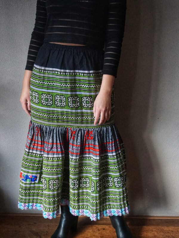 De Maxi rok BK Groen is een handgemaakte rok van een bergstam uit het noorden van Vietnam.