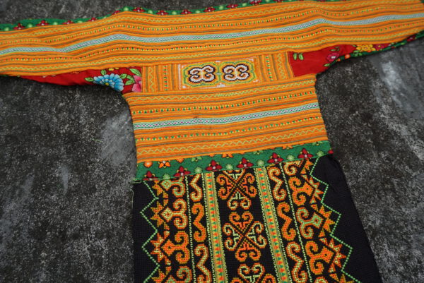 Schort Oranje Klaver is een handgemaakte apron van de berg stammen uit Noordelijk Vietnam met prachtig borduurwerk.