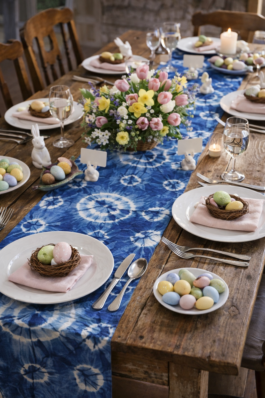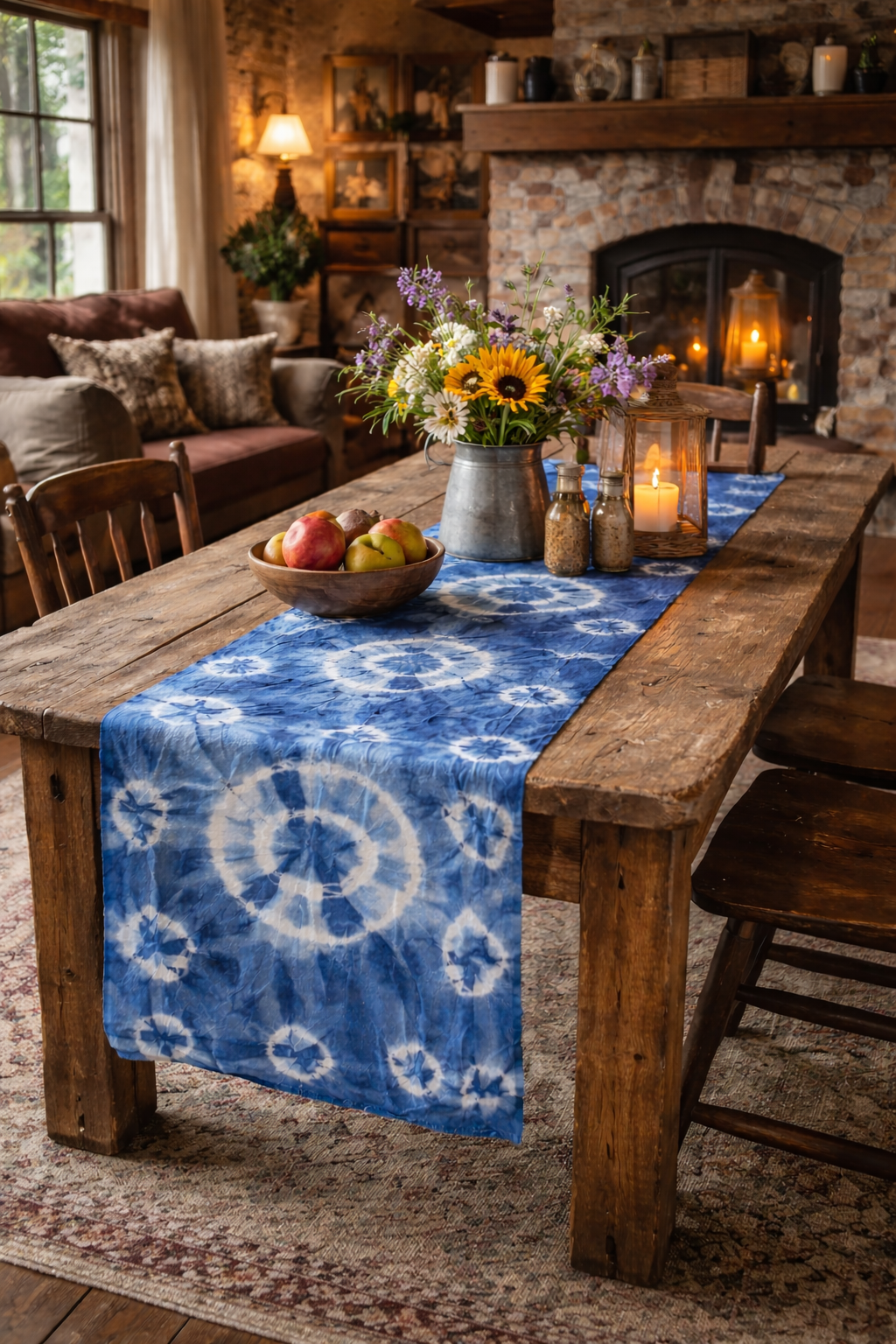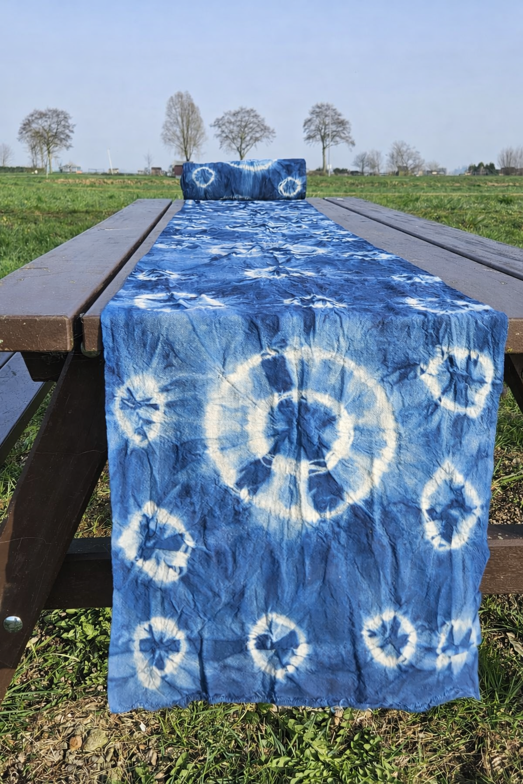 Unieke Handgemaakte Stof katoen Indigo Shibori – Stijl volle oog appel voor jouw tafel en meer
