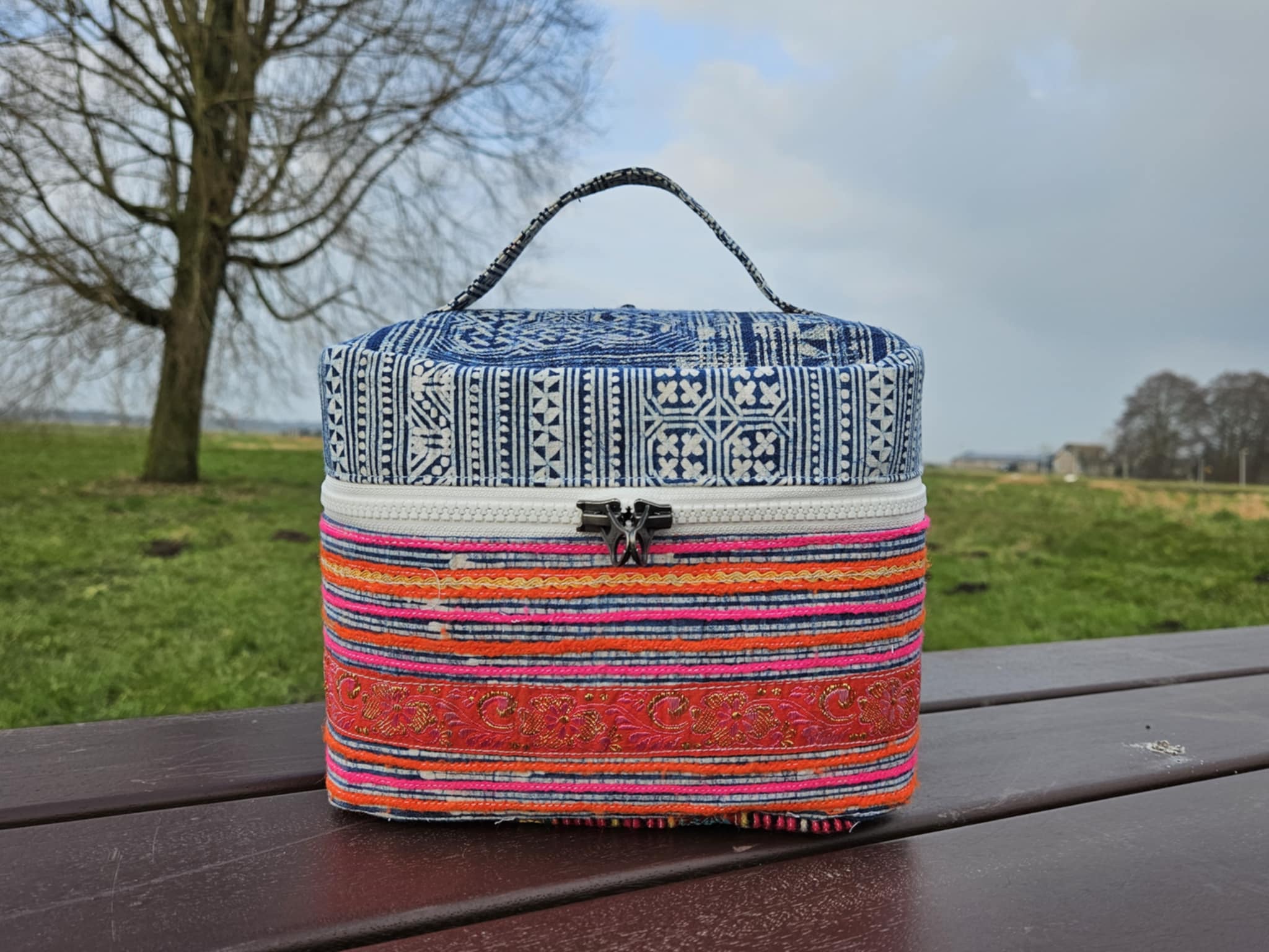 Deze toilettas Indigo Pink is handgemaakt door ons met stoffen en borduurwerk van de HMong stam. U zult nergens anders dit soort toilettassen vinden. Het opbergen van uw make-up is nog nooit zo leuk geweest. Deze met liefde gemaakte toilettasjes zijn een must have dus wees snel en bestel dit prachtige kunstwerk.