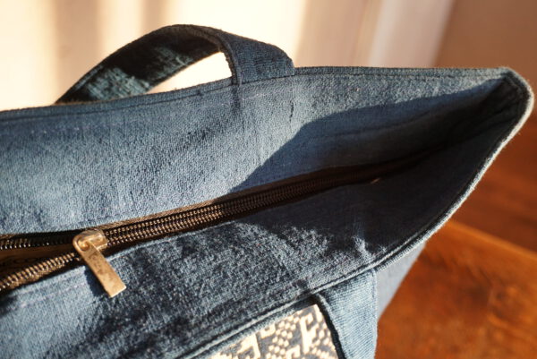 De totebag Loulee Indigo is handgemaakt met hennep, katoen, Lu borduurwerk